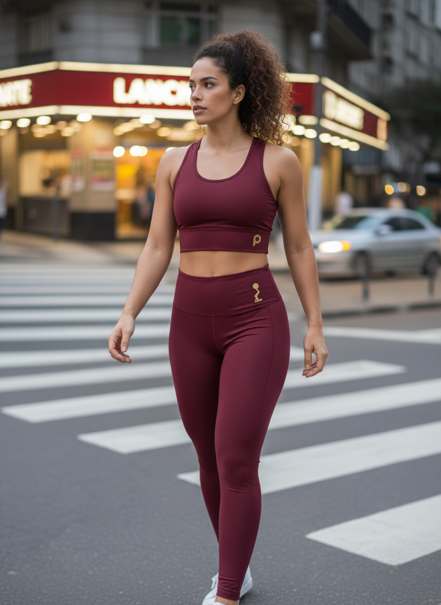 Cor Burgundy Sofisticada: Uma tonalidade rica e profunda, perfeita para criar looks estilosos, tanto na academia quanto em momentos casuais.