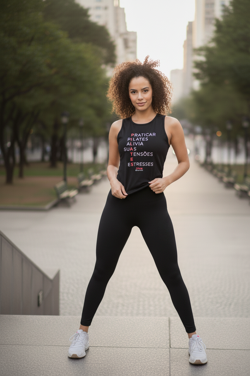 Com design clean e frase inspiradora, ela traduz os benefícios da prática com muito estilo e conforto.
